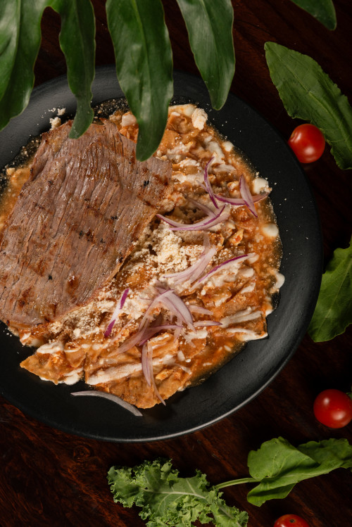 Nuestra receta de chilaquiles colimotes con cecina de Yecapixtla. Our recipe for chilaquiles colimotes with Yecapixtla cecina.
